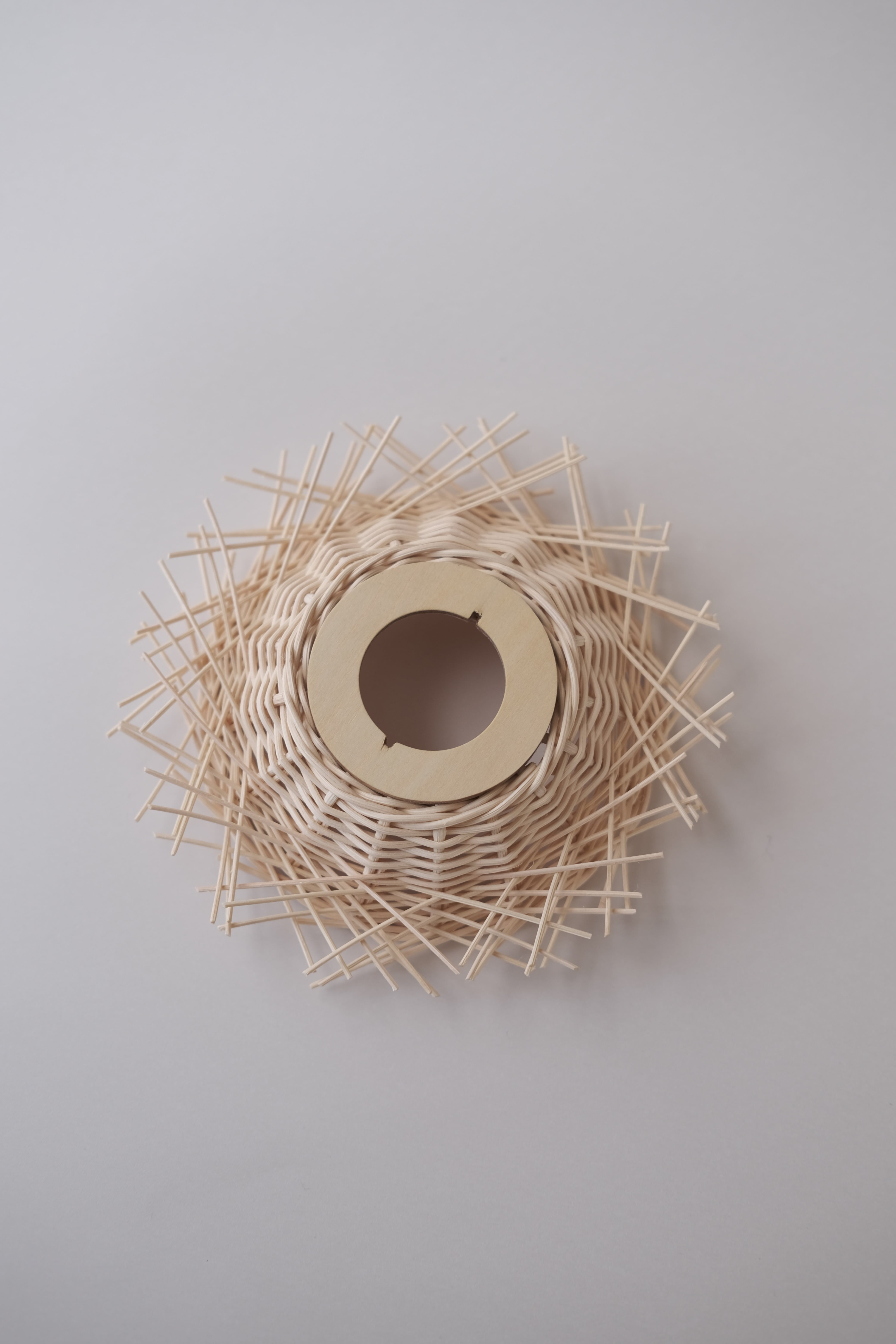 籐でひとつひとつ手編みで製作されたシェードは
