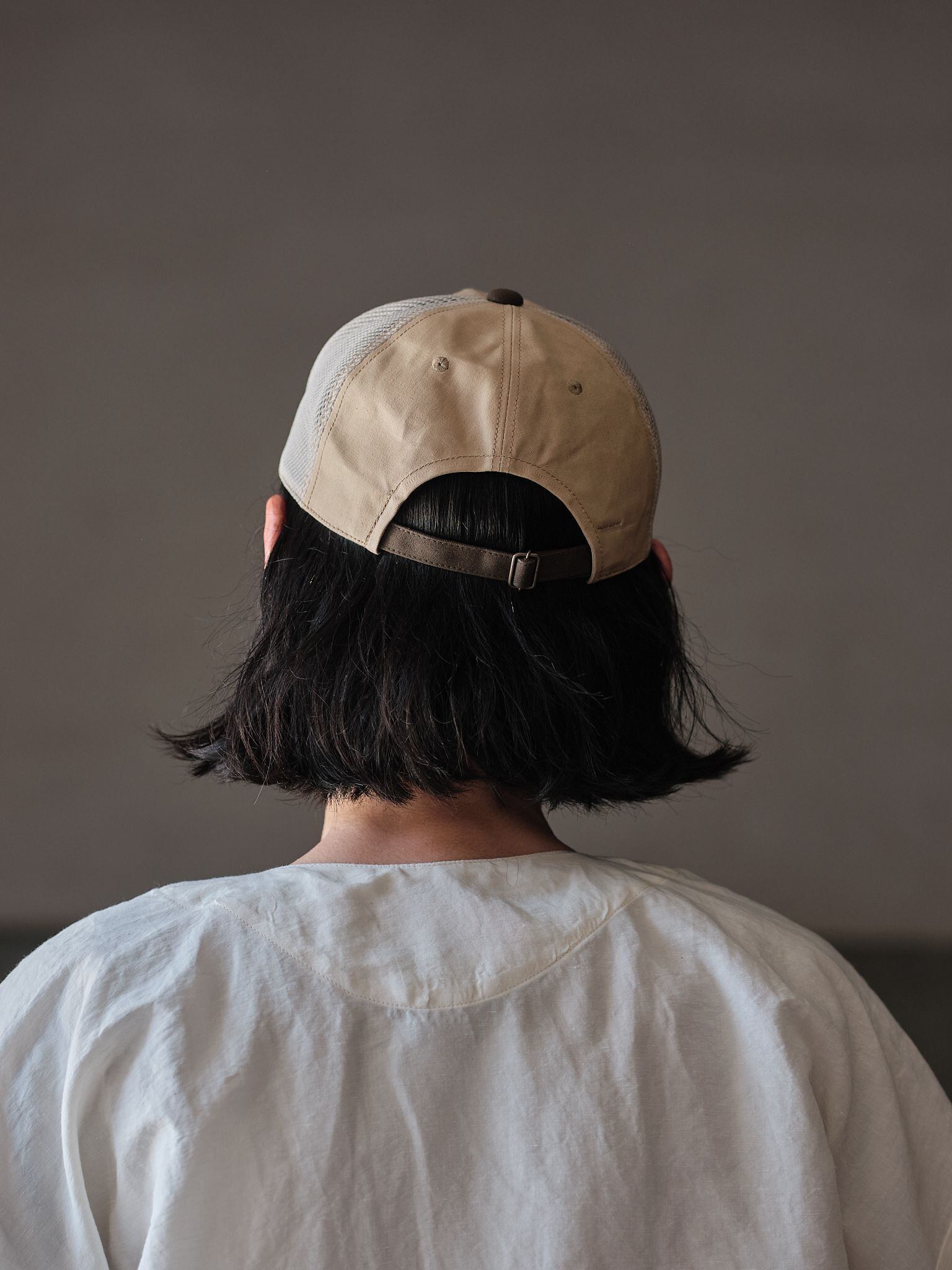 パラフィン加工を施した撥水性が高く丈夫な生地に、一部メッシュを採用した夏でも通気性良く、快適なキャップです。