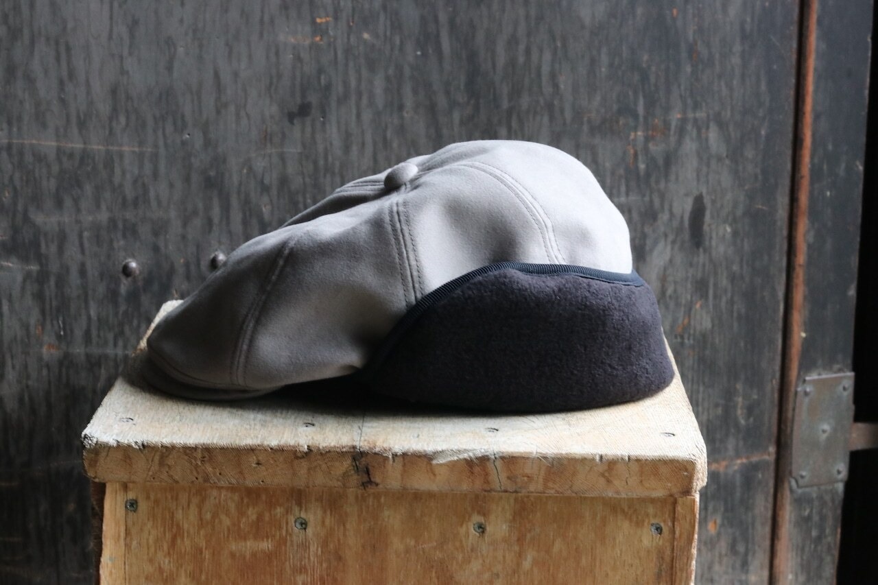 こちらは耳当て付き防寒対策としてはもちろん、色々な被り方が出来るのも凄く良いです!先に出した鳥打帽は少し大きめな作りでしたが、こちらは耳を中に折りたたむ事によって頭の小さい方でも良いサイズ感で被っていただけると思います。