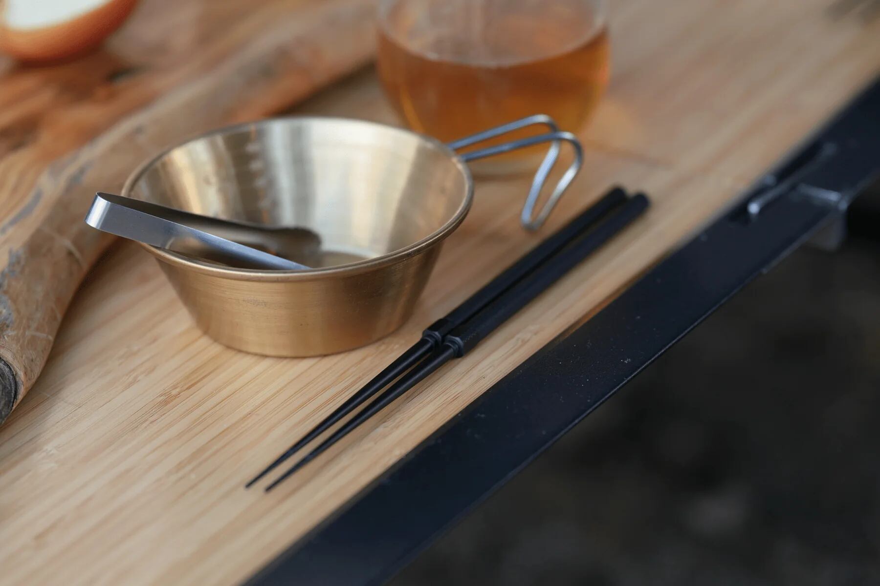 1対の箸をお互いに組み合わせて1つのものとして収納することができ、収納ケースを使用せずとも携帯可能。