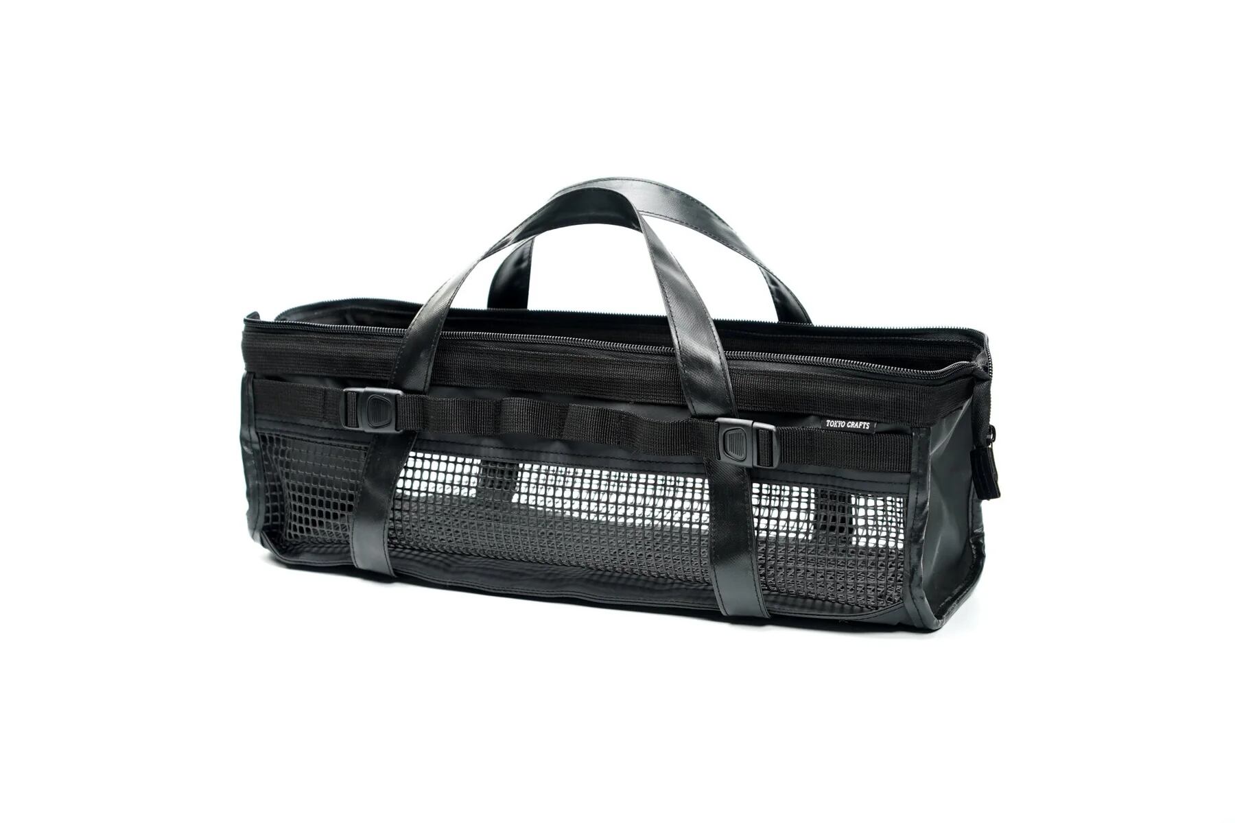 ペグやハンマーを入れやすく、形状維持のワイヤーが入っているため出し入れのストレスがありません。40cmまでの物を収納できます。