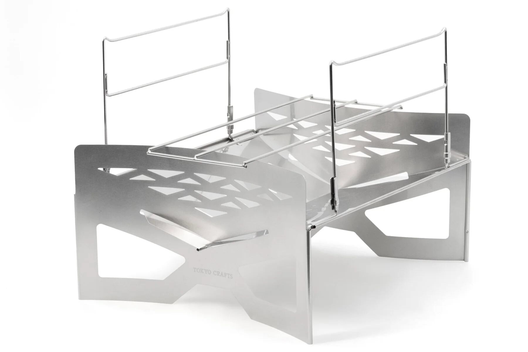 火床パネルの傾斜と、左右のパネルが風防の役割となって、熾火や灰が風で舞うのを低減します。