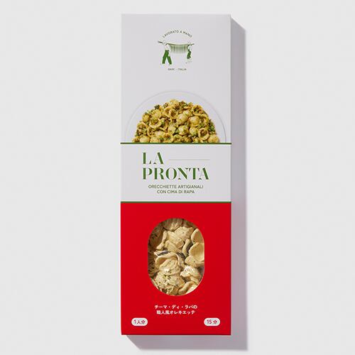 ラ・プロンタは1人分(箱入)です。パスタの種類ごとに色が異なるカラフル&ポップなパッケージデザイン。本物の美味しさを知る方への贈りものにもおすすめです。